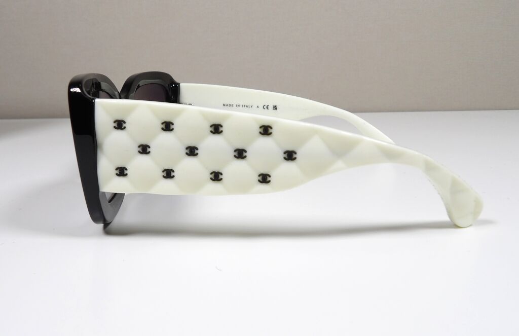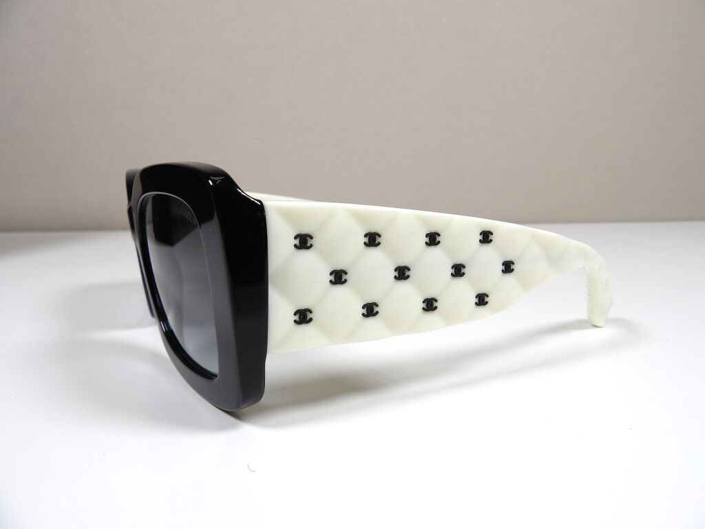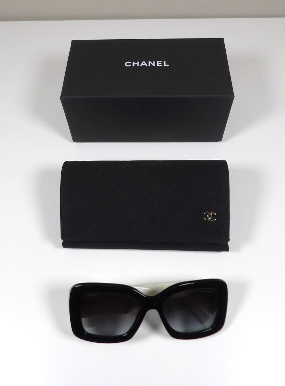 CHANEL - Lunettes de soleil forme carré - Monture : Acétate, Noir et blanc   - Verres : Gris - Neuf avec boîte et étui