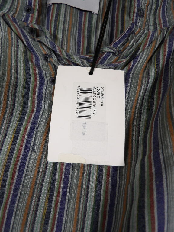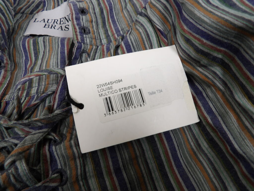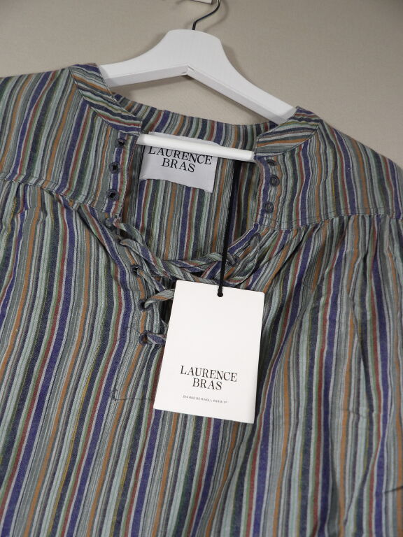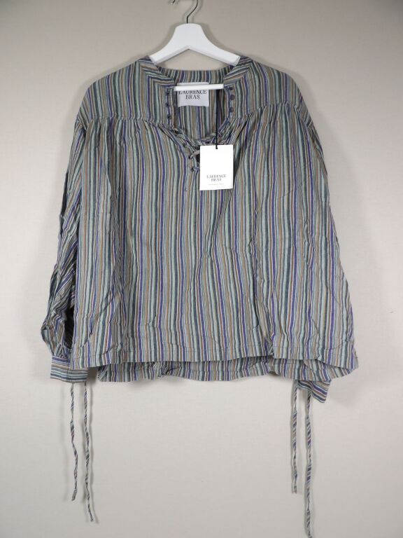 LAURENCE BRAS - Blouse en coton rayée - manches et encolure lacées - Neuf avec étiquette - Taille 34