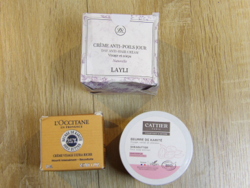 Lot de x13 COSMÉTIQUES divers (neufs et occasion): crèmes, shampoings et autres dont Mela'Aura, Veet, TAAJ ....