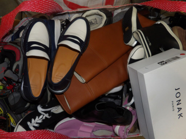 1/2 Palette de 65 paires de chaussures d'occasion, certaines neuves :Homme, Femme et enfant ( divers gammes et marques dont Jonak - Sézanne ...) ATTENTION ce lot est d'occasion tous états et contient divers gammes dont de l'entrée gamme aussi. il n'est pa