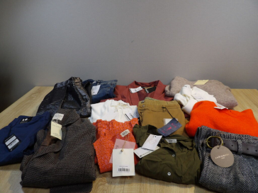 Palette de 200 pièces de vêtements d'occasion et certains neufs : Femme, Enfant, Homme ( divers gammes et marques dont Vanessa Bruno -La Maille Sézane - Caludie Pierlot ...) - ATTENTION ce lot est d'occasion tous états et contient divers gammes donc de l'