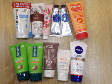 CRÈME POUR LES MAINS : Lot de 12 articles dont CICA BIAFINE, NIVEA, DERMOPHIL, etc ... *NEUF*