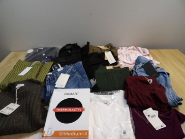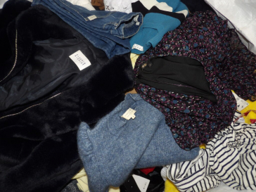 Palette de 200 pièces de vêtements d'occasion et certains neufs : Femme, Enfant, Homme ( divers gammes et marques dont Maje - Sézane - Caludie Pierlot ...) - ATTENTION ce lot est d'occasion tous états et contient divers gammes donc de l'entrée type KIABI
