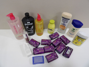 Lot de x20 COSMÉTIQUES divers (neufs et occasion): AXE, TOPICREM, Le petit marseillais, LUX...