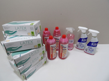 Lot de PRODUITS MENAGERS : x2 Pulvérisateurs Kr - Détachant avant lavage; x1 Nettoyant tout usage, x4 Gel Détartrant Nettoyant Désinfectant Désodorisant, et des gants en latex (pour bien se protéger pour faire le ménage?)