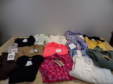 Palette de 200 pièces de vêtements d'occasion et certains neufs : Femme, Enfant, Homme ( divers gammes et marques dont Maje - Sandro - Sézane...) - ATTENTION ce lot est d'occasion tous états et contient divers gammes donc de l'entrée type KIABI aussi. il