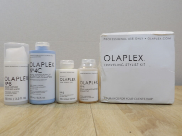 OLAPLEX : Lot de 5 articles : N°8 Bond intense masque 100ml - N°4C Bond maintenance shampooing 250 ml - N° 3 hair perfector 100 ml - N°4 bond maintenance shampooing 100 ml - TRAVELING STYLIST KIT 100 ml *NEUF*