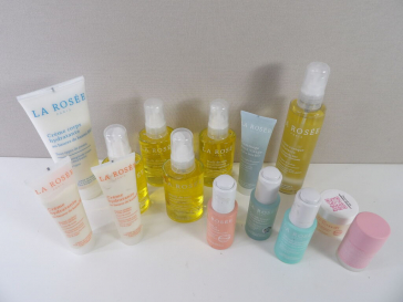 LA ROSÉE Paris : Lot de x14 articles : x4 Huiles de soin nourrissante 100ML, x2 crèmes hydratante au beurre de karité 60ML, x1 crème corps 200Ml, x1 Lotion tonique hydratante 200ML, x3 Sérums 30ML, x1 Gommage doux visage, x1 Masque en stick régénérant et