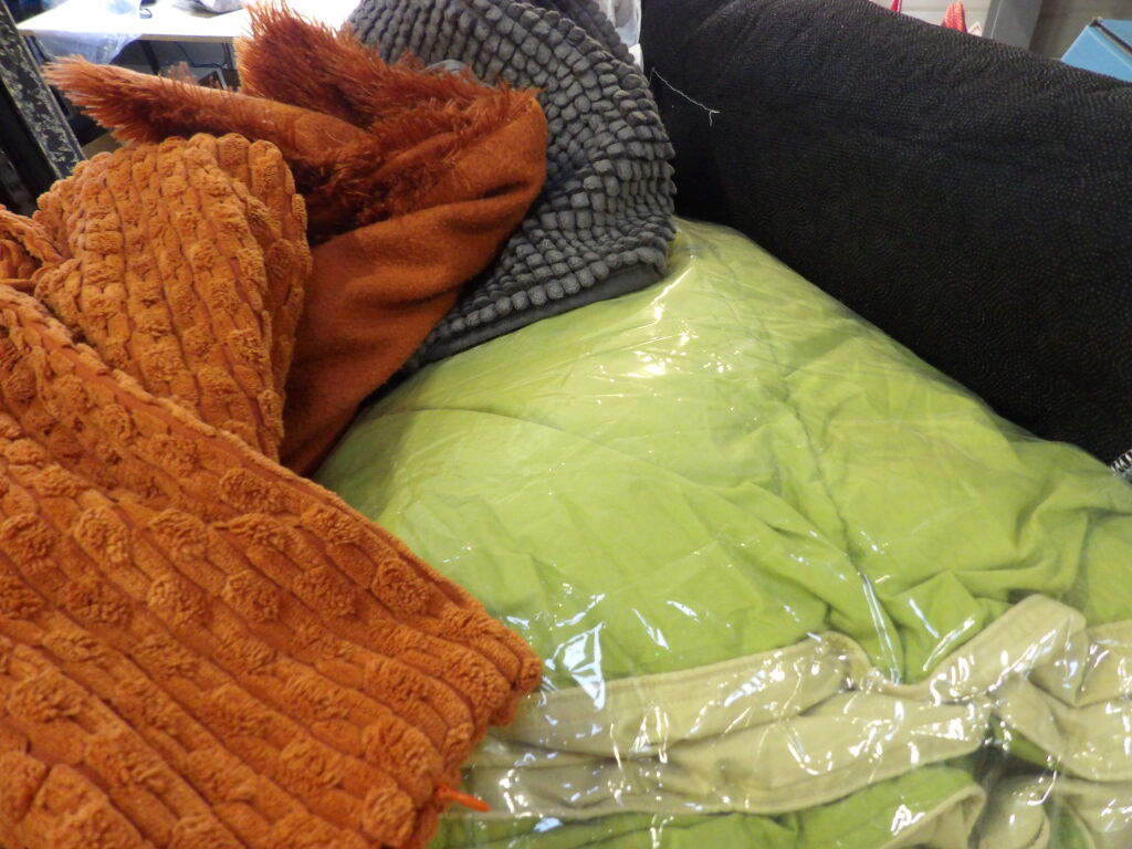 1/2 palette de +60 articles de linge de maison - Neuf et occasion dont draps housse, serviettes de bain, ...