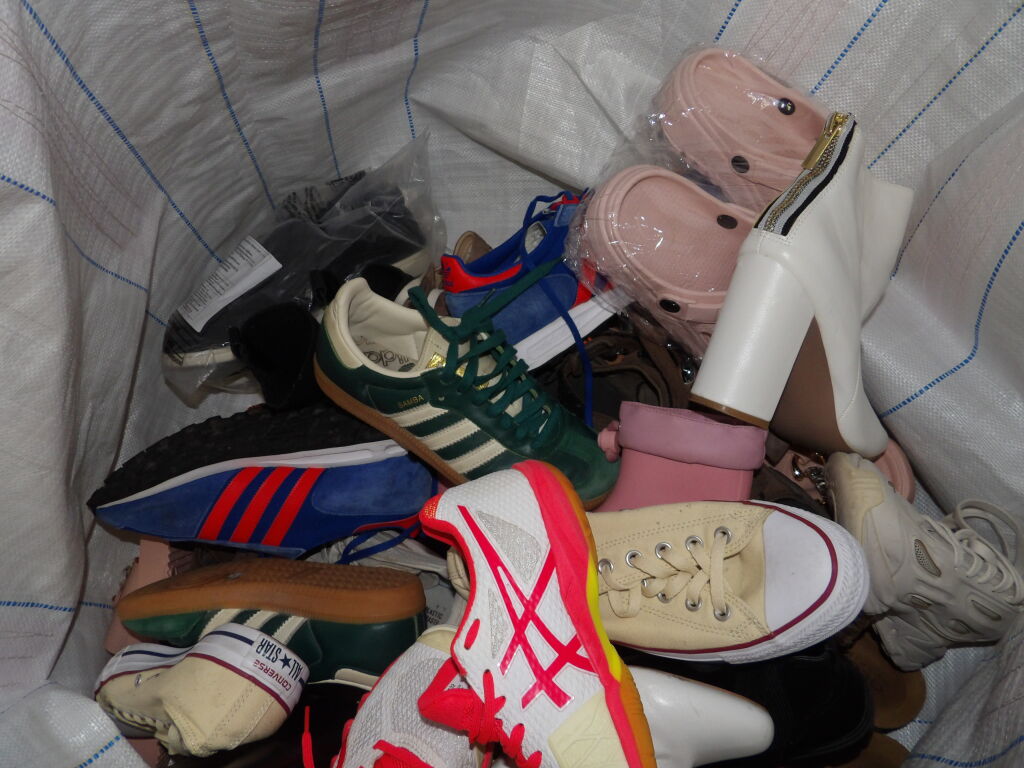 1/2 Palette de 65 paires de chaussures d'occasion, certaines neuves :Homme, Femme et enfant ( divers gammes et marques dont UGG - Sézanne ...) ATTENTION ce lot est d'occasion tous états et contient divers gammes dont de l'entrée gamme aussi. il n'est pas composé uniquement des marques citées.