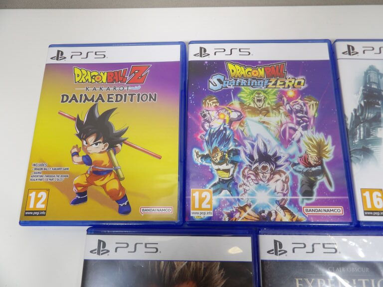5 jeux pour PS5 dont Dragon Ball Z Kakarot Daima Edition, Dragon Ball Sparking Zero, Final Fantasy VII, Black Myth Wukong ---occasion non testé vendu en l'état--- et Expedition 33 neuf sous blister