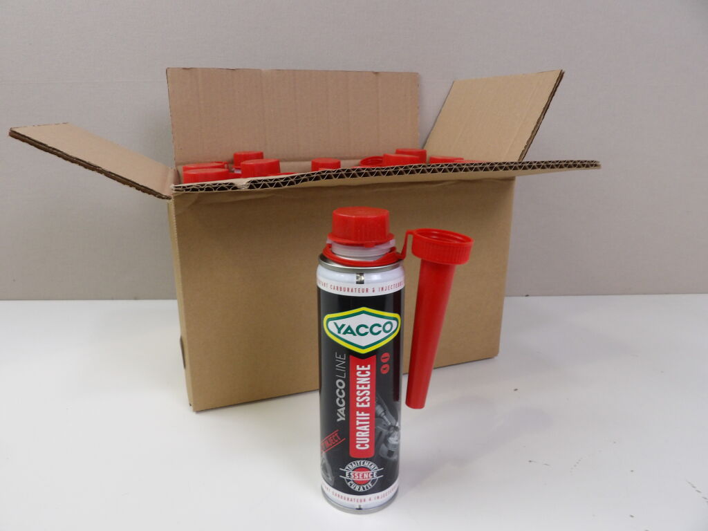 AUTOMOBILE - 1 Lot de 12 flacons de CURATIF ESSENCE YACCO de 250ml ( Valeur unitaire 20€ ) - Cet additif a été formulé pour le traitement de l'encrassement des systèmes d'admission des moteurs essence. Un usage régulier de ce produit nettoie et maintient propre le système d'admission (carburateur, systèmes d'injection monopoint ou multipoint).
