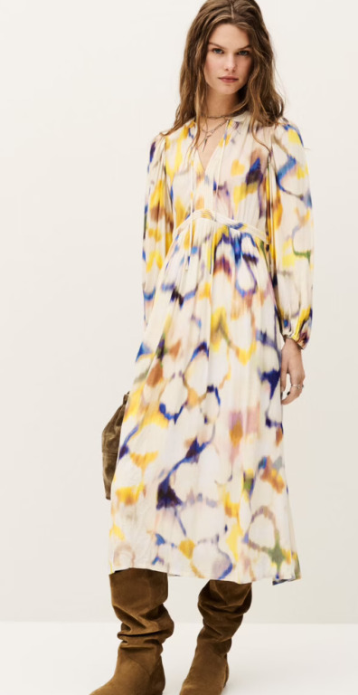 Tshirt Rosie Ecru, Chemise JAKY Bleu ciel et Robe FLORIA Multico.