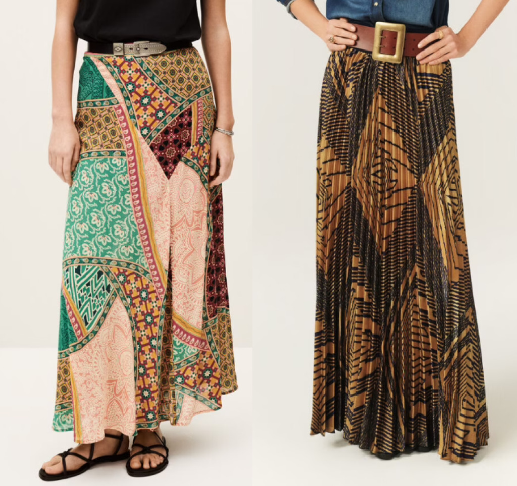 Les premières images sont de synthèse : Jupe SOW Ocre, Jupe NELLY navy et Jupe FANCY multico.