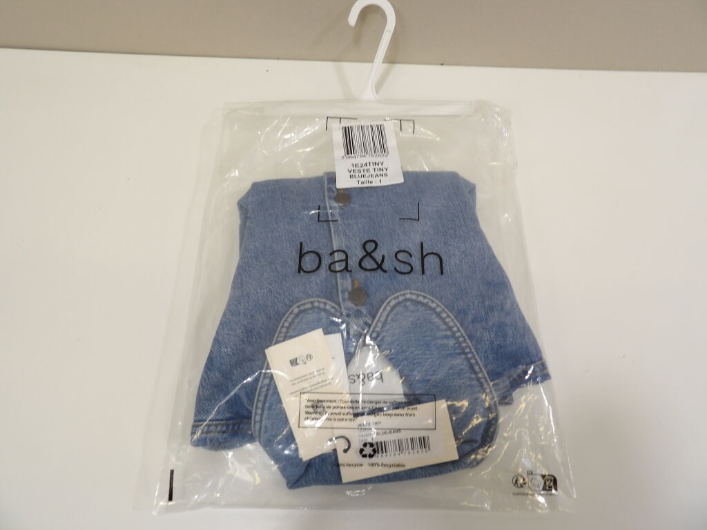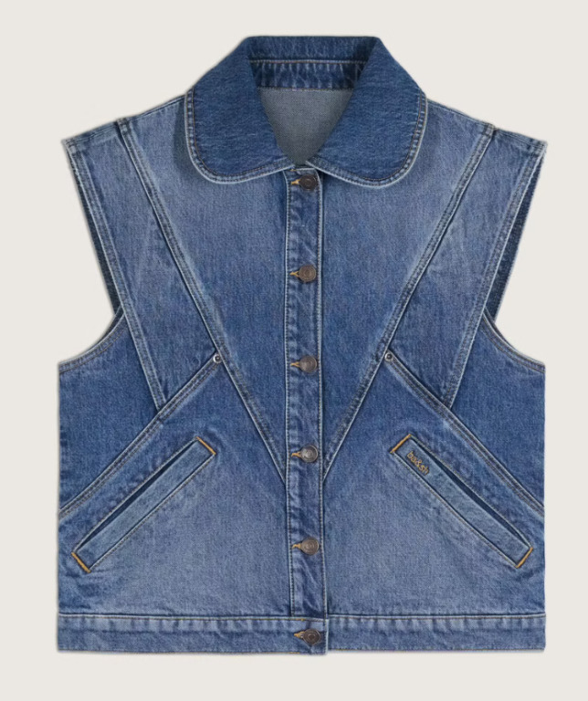 BA&SH : Veste en jeans sans manches MAX en light used blue FEMME en taille 1 (=S/36) - Neuf avec étiquettes magasin, encore emballé. La première image est de synthèse.