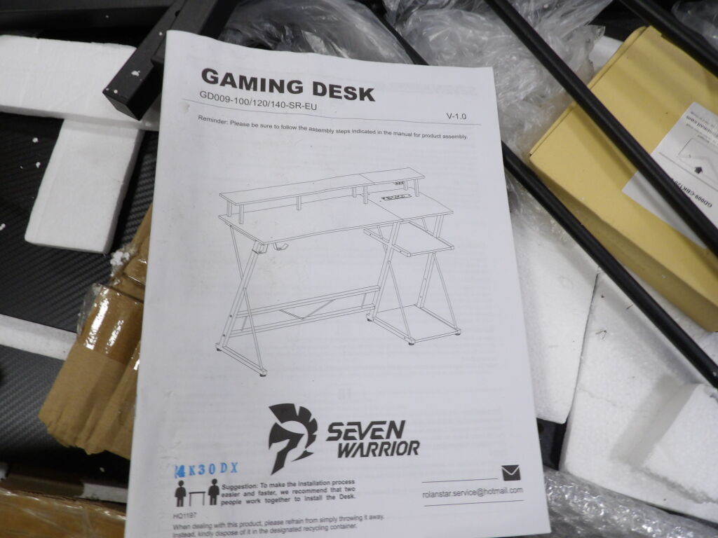 BUREAU GAMING - coloris noir de la marque Seven warrior - 120cm - Carton très abîmé, complétude non assurée / Vendu en l'état - à noter un coin cassé