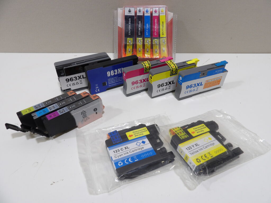 BUREAUTIQUE - 1 Lot de Cartouches d'encre compatibles - 1x 963 XL ( Pour HP) Colors &Black + 1x 123 XL Cyan ( Pour HP) + 1x 123 XL Yellow ( Pour HP) + 1x Pack 571 Colors & Black ( Pour Canon ) + 3 Cartouches Canon 551 Yellow, Cyan, Magenta