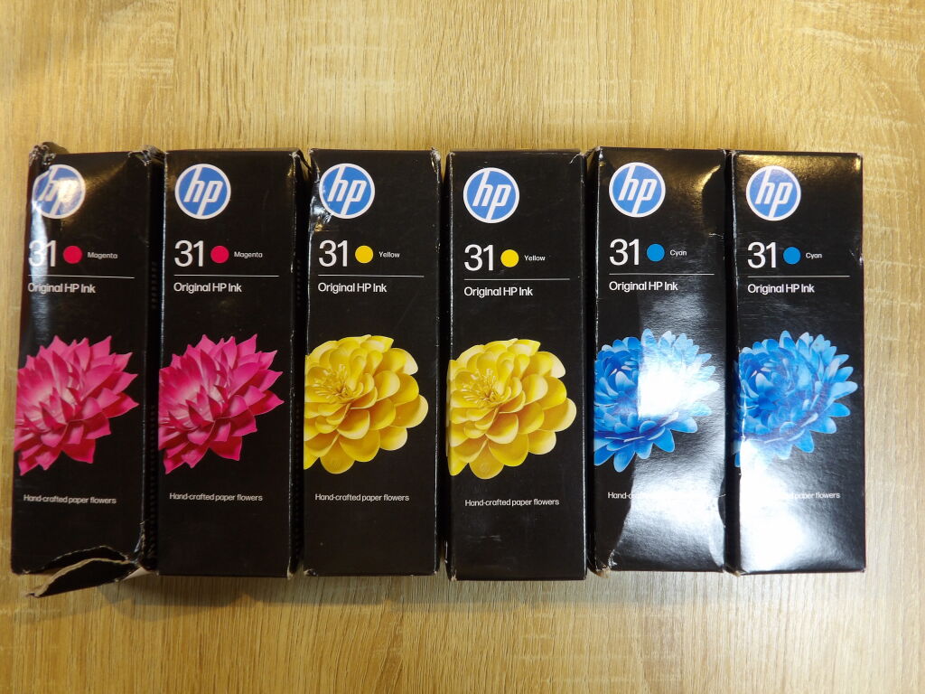 BUREAUTIQUE : 6 Cartouches : 2 Magenta HP Réf : 31,2 Bleu HP Réf : 31,2 Jaune HP Réf : 31 *NEUF emballage abimé*