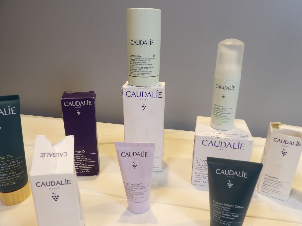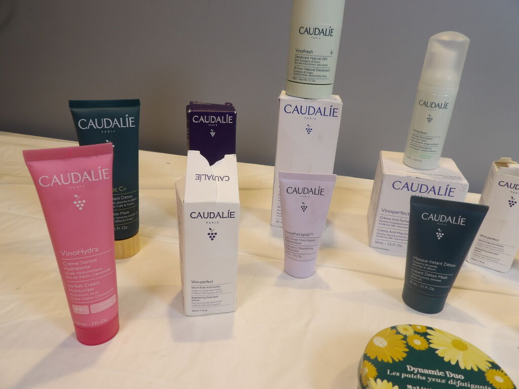 CAUDALIE 14 Pcs : Crème sorbet - Soin corps - Masque intense detox - Crème visage - Déodorant - Mousse nettoyante Sérum anti-taches - Patch yeux etc.... Neuf et Occasion