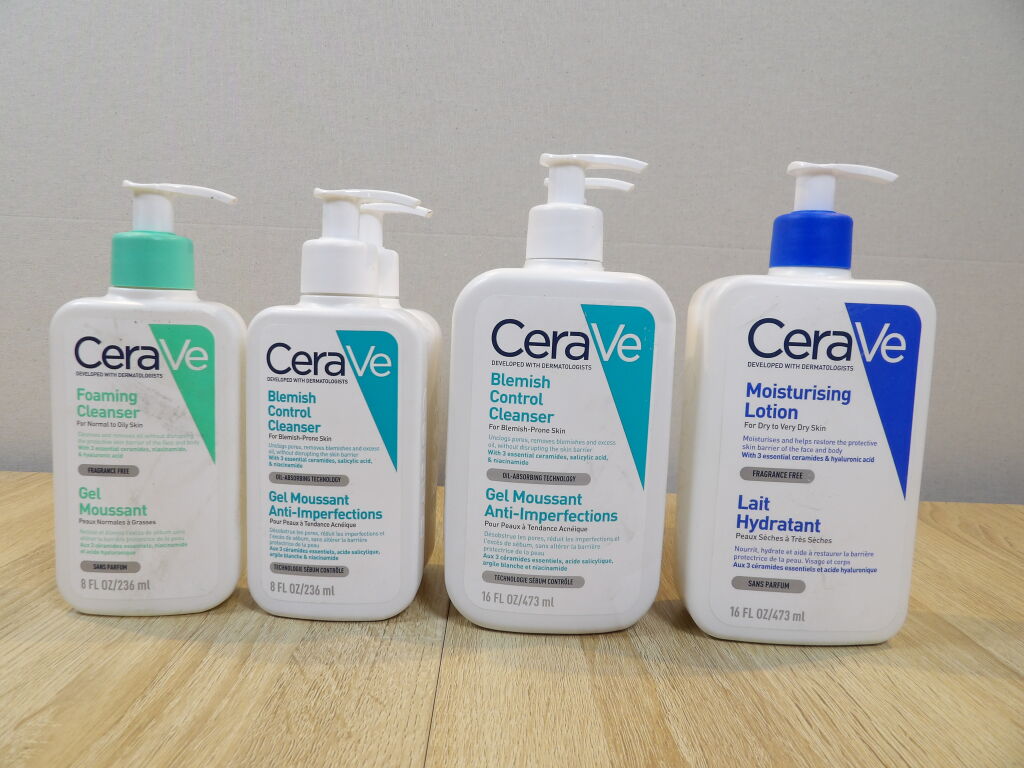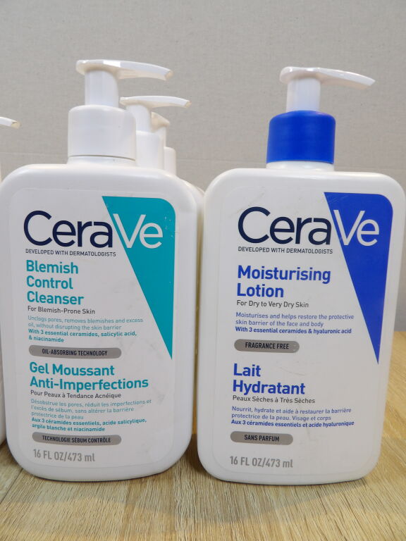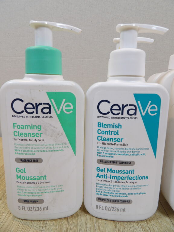 CERAVE : Lot de 7 articles : x1 Gel moussant 236 ml - x2 Gel moussant anti-imperfections 236 ml - x3 Gel moussant anti-imperfections 473 ml - x1 Lait hydratant 473 ml *NEUF*