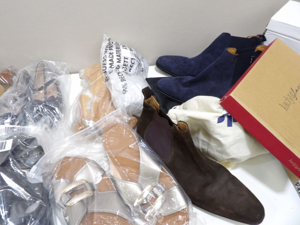 CHAUSSURES Lot de 28 paires NEUVES et certaines d'occasion; chaussures principalement "sans marque" type marché; et quelques unes de marque comme ASOS, Mango ou Paul SMITH. On y a ajouté 3 paires de chaussures ENFANT.