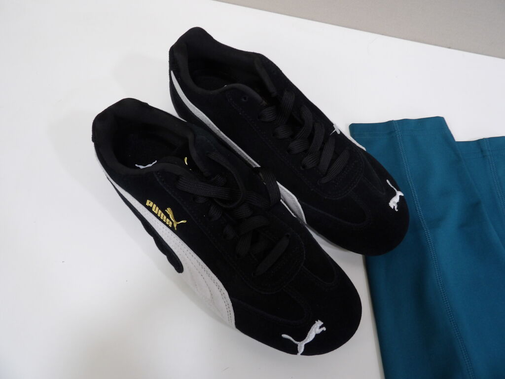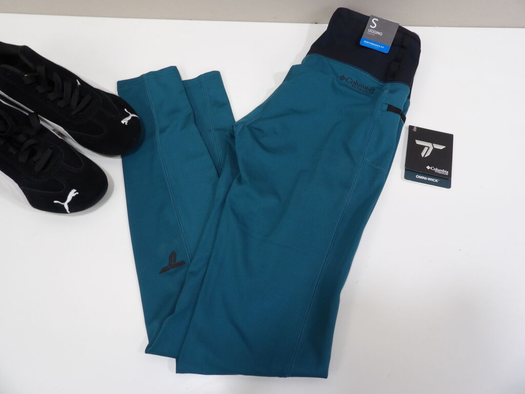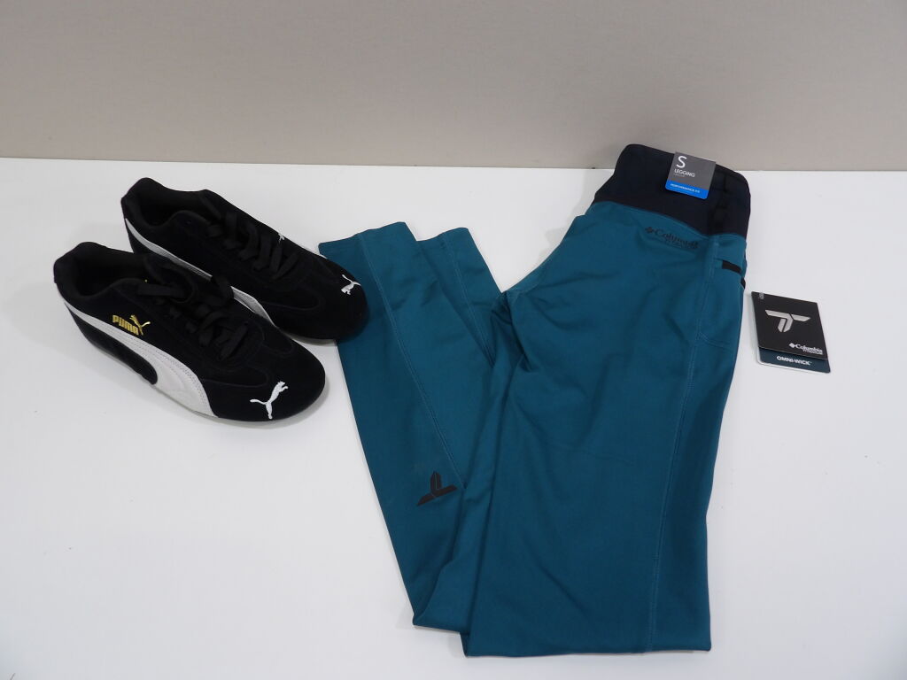 COLUMBIA et PUMA : Legging vert d'eau en S neuf et Paire de chaussures SPEEDCAT (etat neuf) en taille 38.
