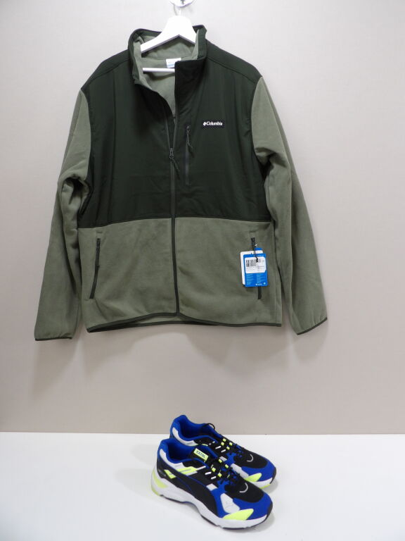 COLUMBIA Veste bi matière avec polaire Kaki NEUVE en taille XL - et paire de baskets T46 etat neuf.