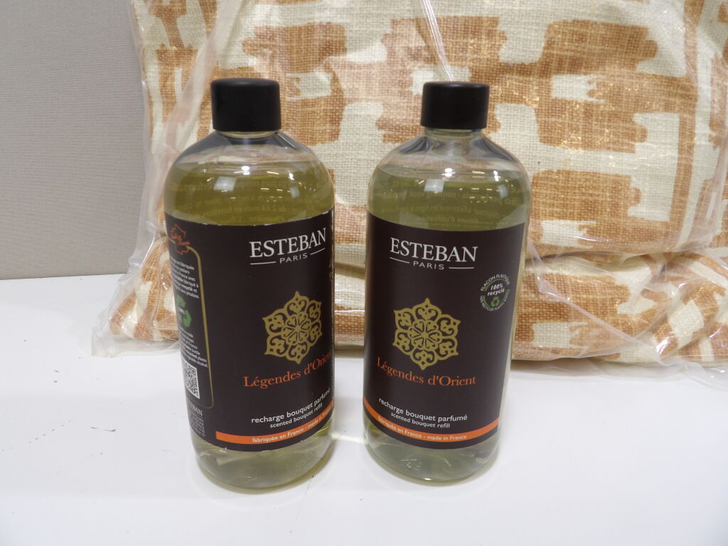 DECORATION : x2 Coussins NEUFS - On y inclut x2 recharges de bouquet parfumé ESTEBAN - Légendes d'Orient de 500ML.