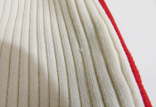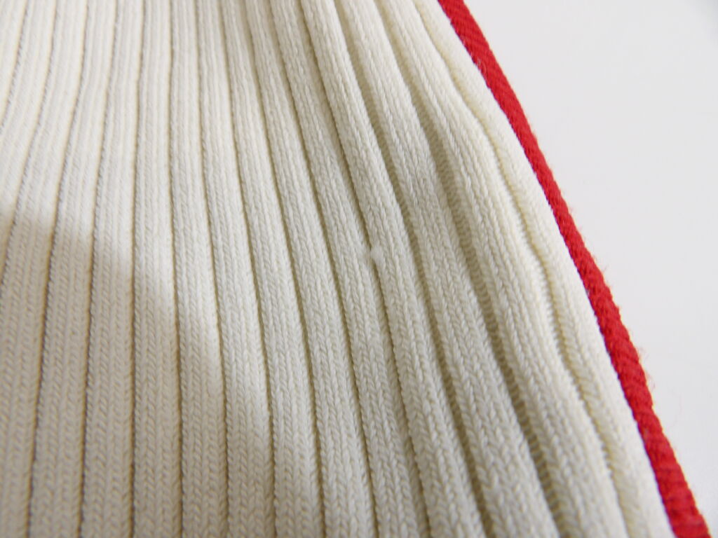 - Jupe en maille coloris beige / rouge avec Zip (attention des fils tirrés)