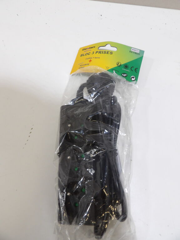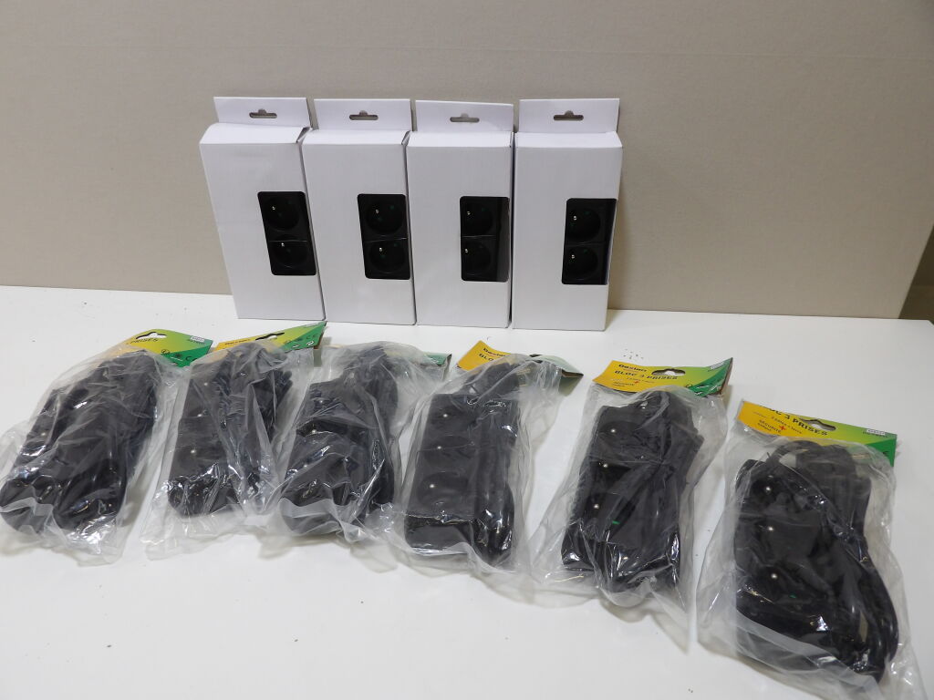 ELECTRICITE - Lot de 10 x DEXLAN Multiprise 3 prises sans interrupteur noire - 1,5 m - NEUF