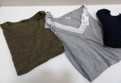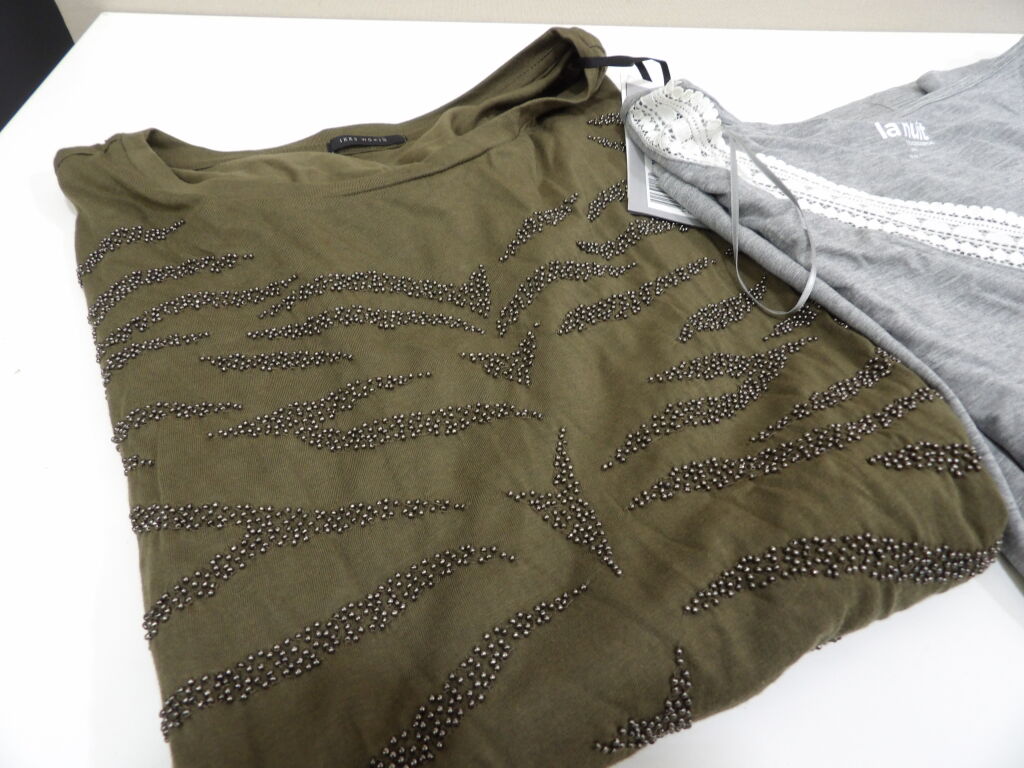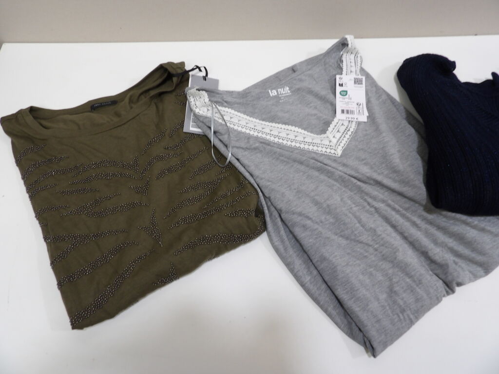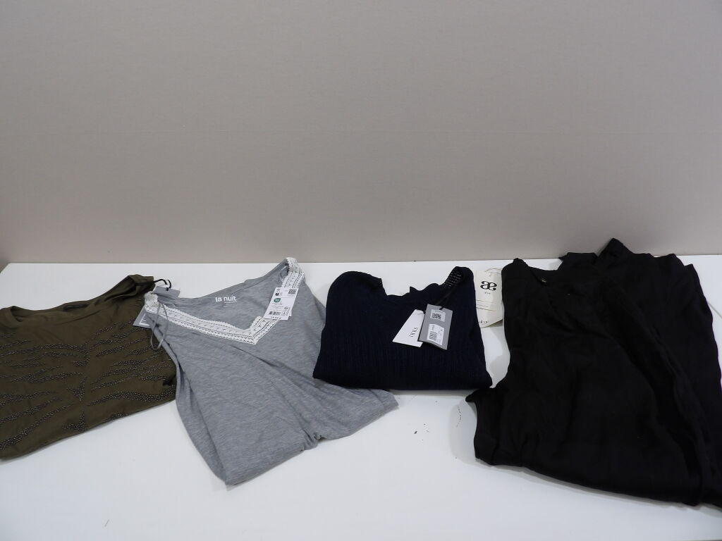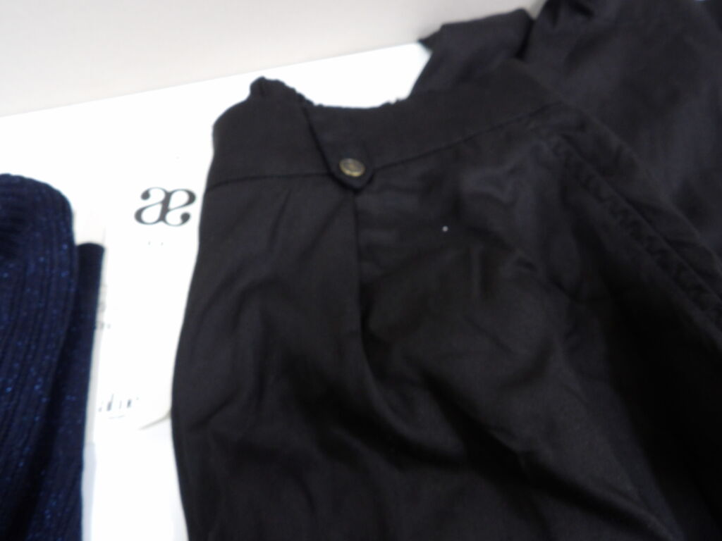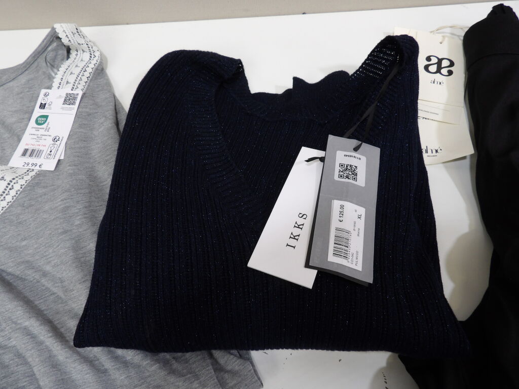 FEMME - XL - 44 - 46 : Lot de x4 articles NEUFS : Almé Paris Pantalon 44/46 - Robe de nuit ROUGEGORGE 44, Tshirt + Pull IKKS en XL.