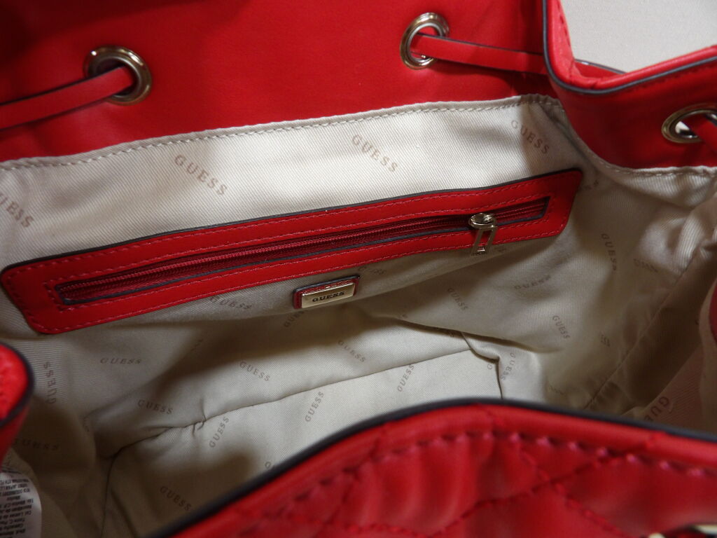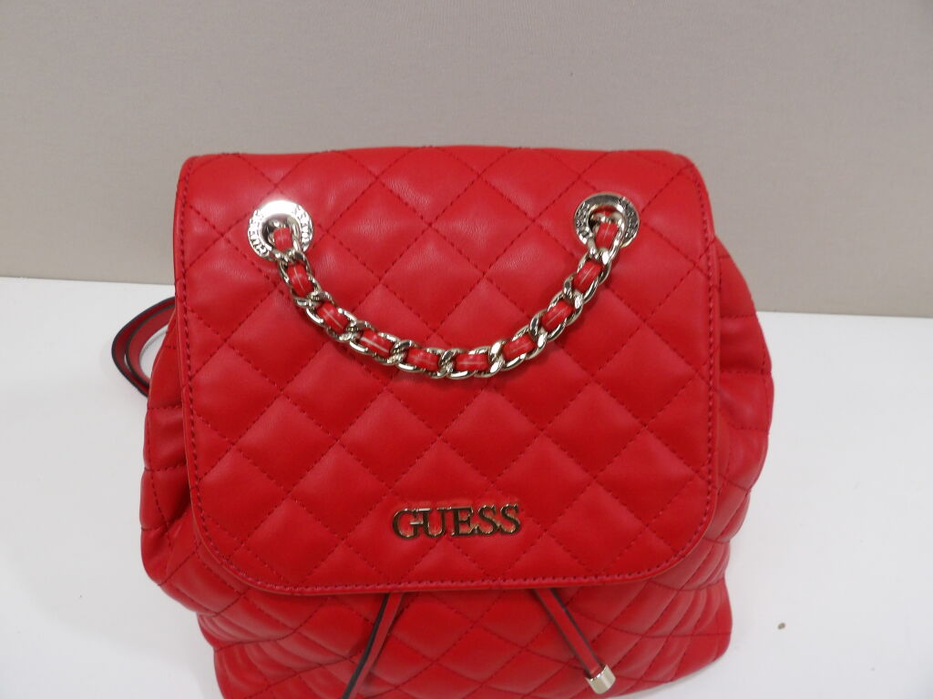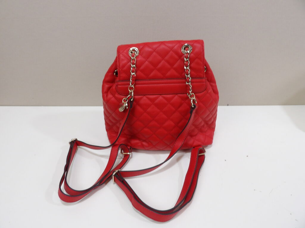 GUESS - Sac à dos en simili cuir rouge matelassé - Occasion en bon état - 29 x 25 x 15 cm