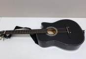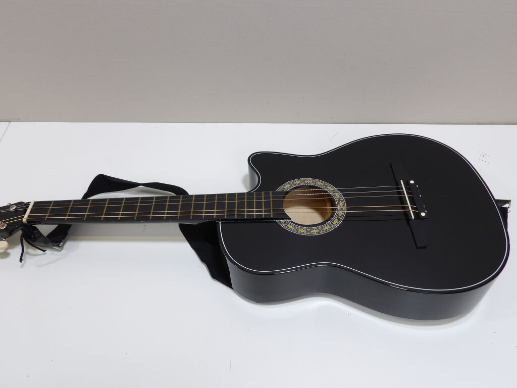 Guitare sèche, une corde manquante, occasion, chocs sur le haut du manche, vendue dans l'état.