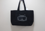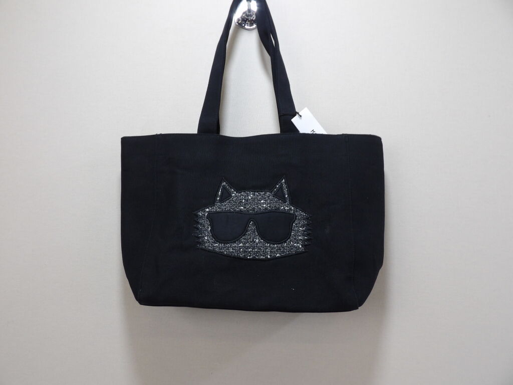 KARL LAGERFELD - Cabas en toile coton coloris noir motif chat appliqué - Neuf avec étiquette - 34 x 29 x 12 cm