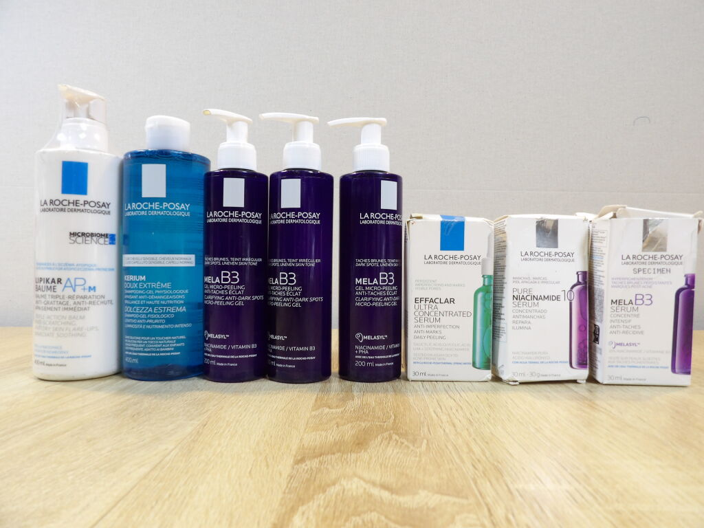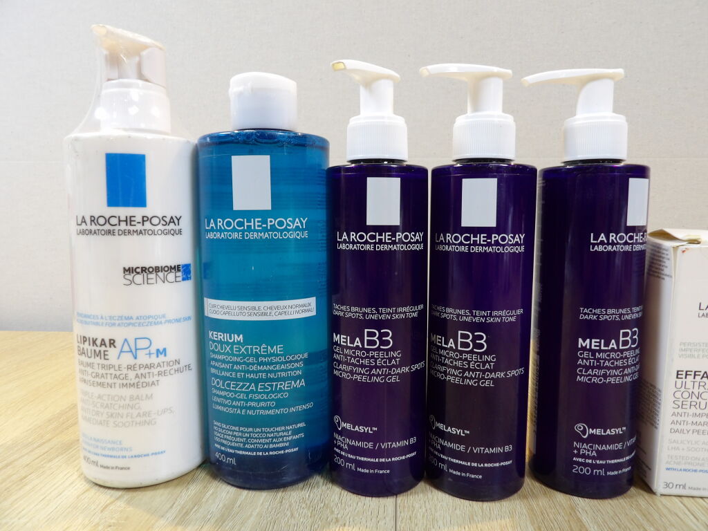 LA ROCHE POSAY : Lot de 9 articles dont 1 Lipikar baume Ap+M triple-réparation 400ml + 1 Shampooing Kerum doux extrême 400ml + 3 Mela B3 gel micro-peeling 200ml + 1 Effaclar sérum 30ml + 1 Pure niacinamide 10 sérum 30ml + 2 Mela B3 sérum 30ml. *NEUF emballage abimé/descellé*