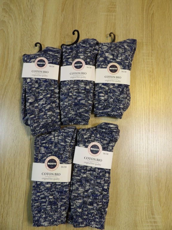 Lot de 5 paires de chaussettes coton Bio SCOTT de couleur Bleu - blanche, Taille 36-38