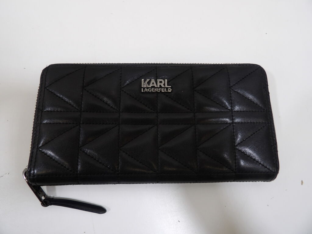 Lot de x2 portes monnaies d'occasion en bon état : KARL LAGERFELD env.20,5 x 11cm, et COACH avec Maléfique Petit porte cartes 10x7CM.