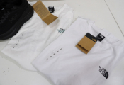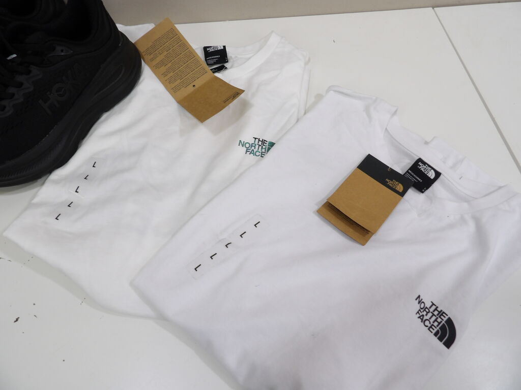 Lot SPORT contenant x4 articles : x2 Tshirts neufs The North Face en L + x1 Jogging PANTAGONIA en L, et x1 paire de baskets HOKA en Taille 40 - etat neuf.