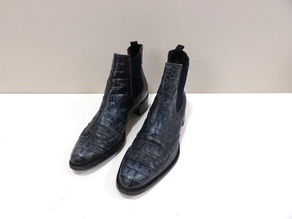 MIUMIU - Boots en cuir effet croco coloris gris - Occasion en bon état - Taille 37