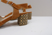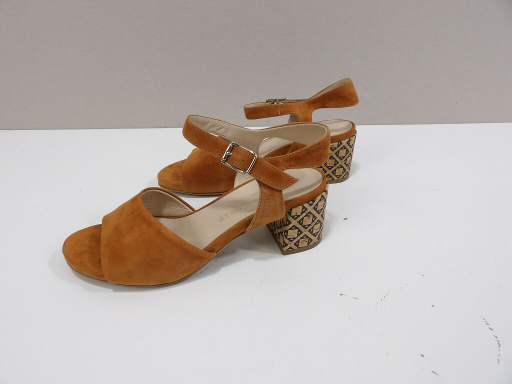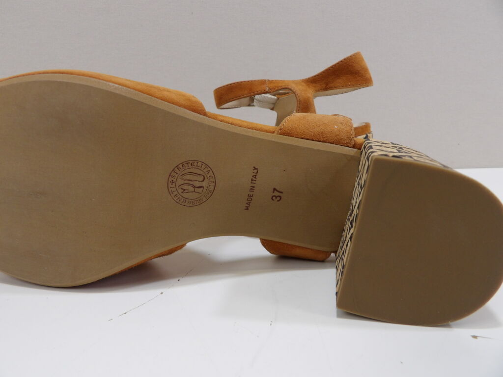MODA DI FAUSTO - Sandales en cuir suédé camel et talons en liège - Neuf sans boîte - Taille 37