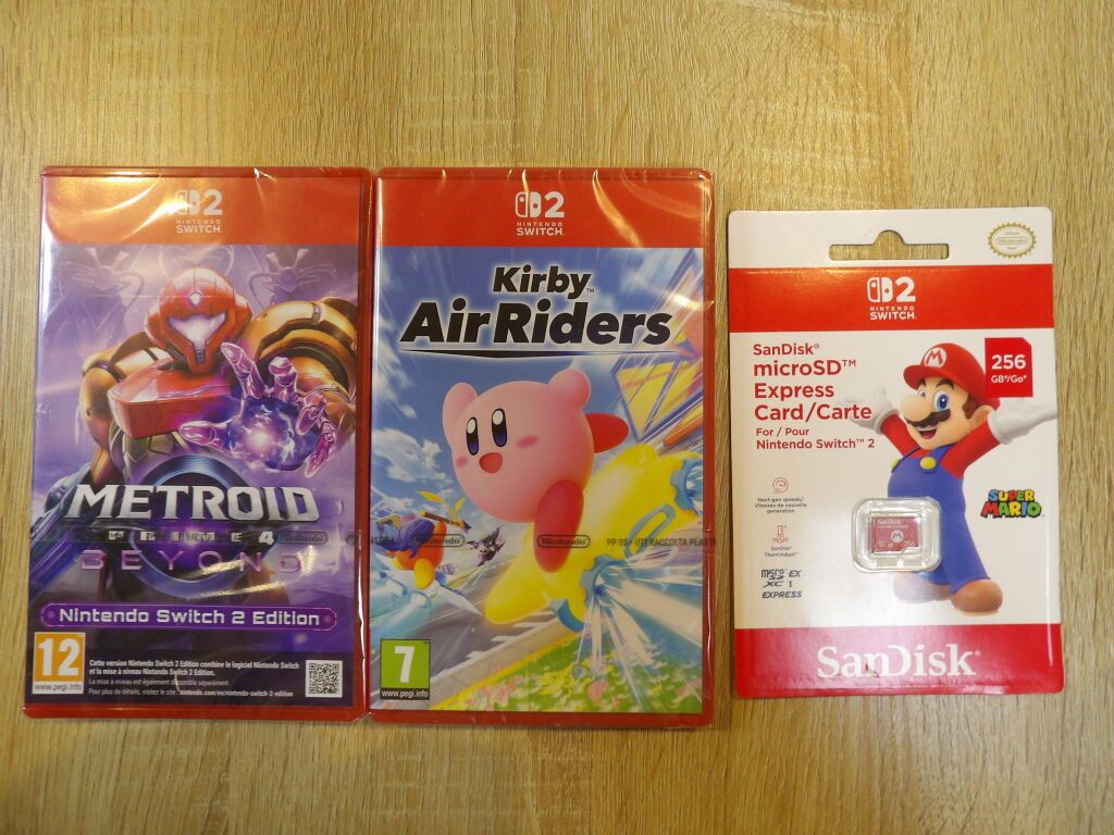 NINTENDO SWITCH 2 : 2 Jeux METROID BEYOND - KIRBY AIR RIDERS + 1 Carte SD 256 GB/GO *NEUF blister*