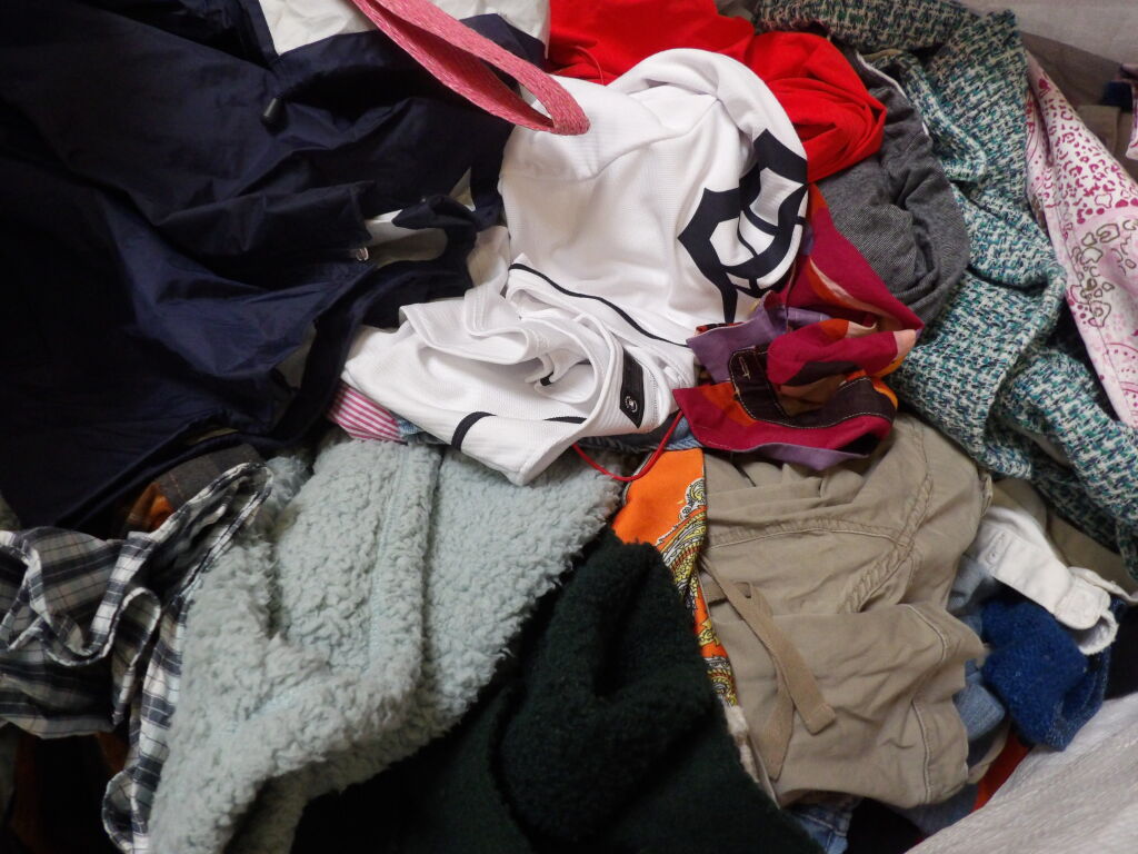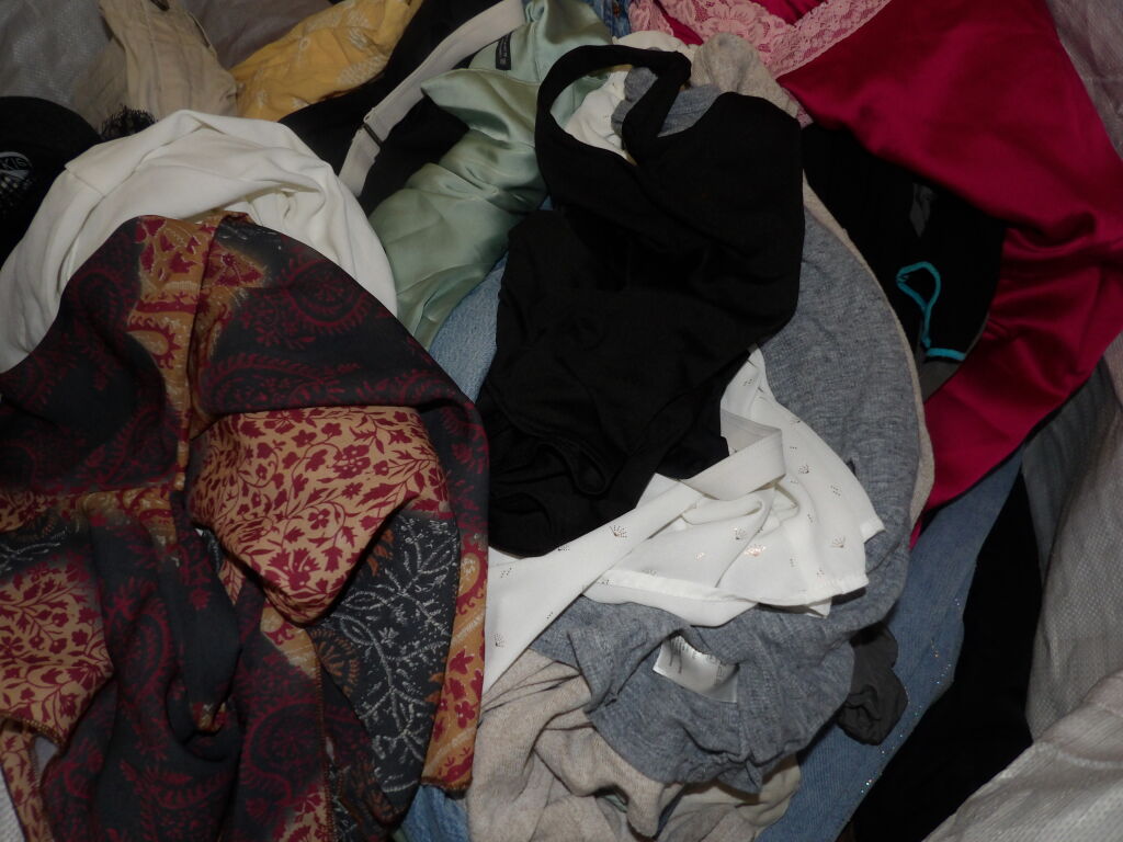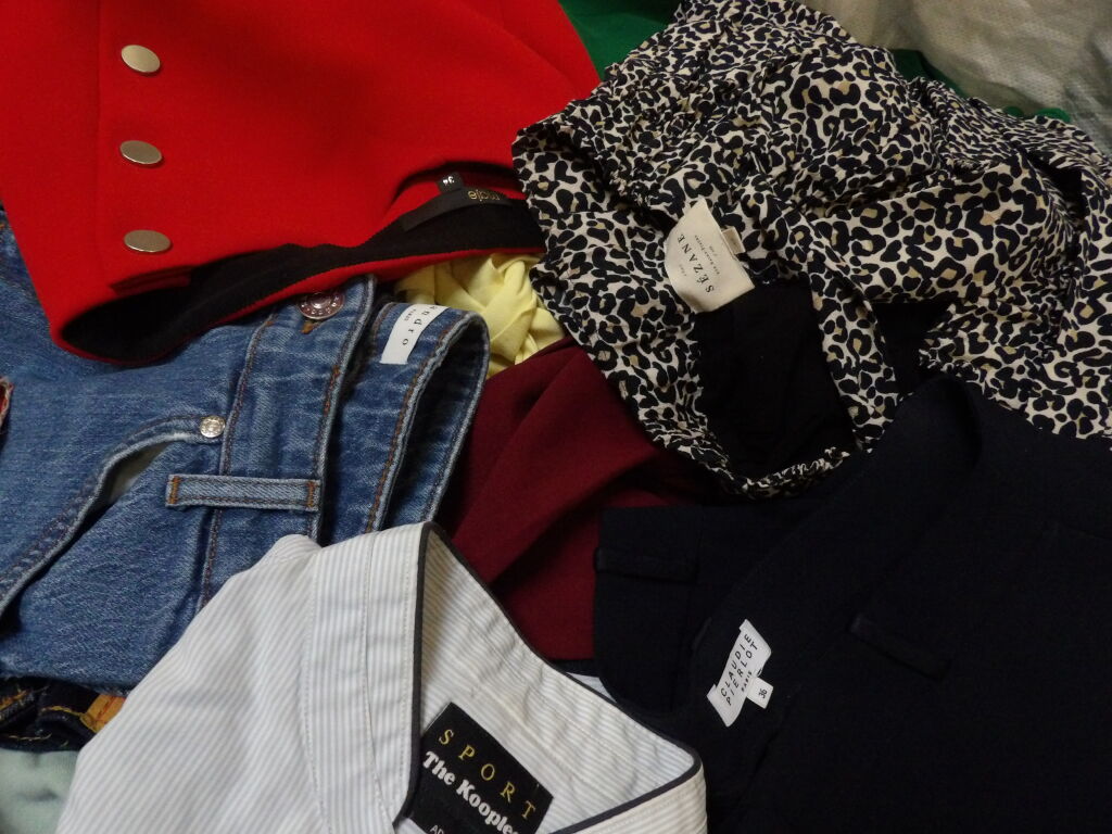 Palette de 200 pièces de vêtements d'occasion et certains neufs : Femme, Enfant, Homme ( divers gammes et marques dont Sézane - Maje - Sandro ...) - ATTENTION ce lot est d'occasion tous états et contient divers gammes donc de l'entrée type KIABI aussi. il n'est pas composé uniquement des marques citées.