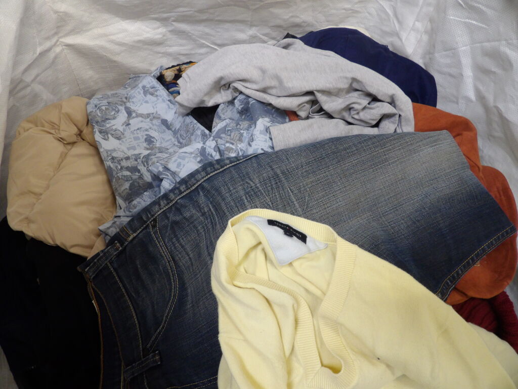 Palette de 200 pièces de vêtements d'occasion et certains neufs : Femme, Enfant, Homme ( divers gammes et marques dont The Kooples - Sandro - La Maille Sézane ...) - ATTENTION ce lot est d'occasion tous états et contient divers gammes donc de l'entrée type KIABI aussi. il n'est pas composé uniquement des marques citées.