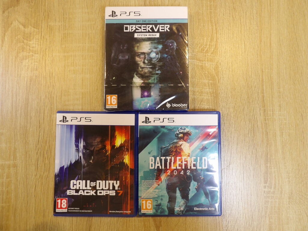 PS5 : 3 Jeux : OBSERVER - CALL OF DUTY BLACK OPS 7 - BATTLEFIELD *NEUF blister et OCCASION*