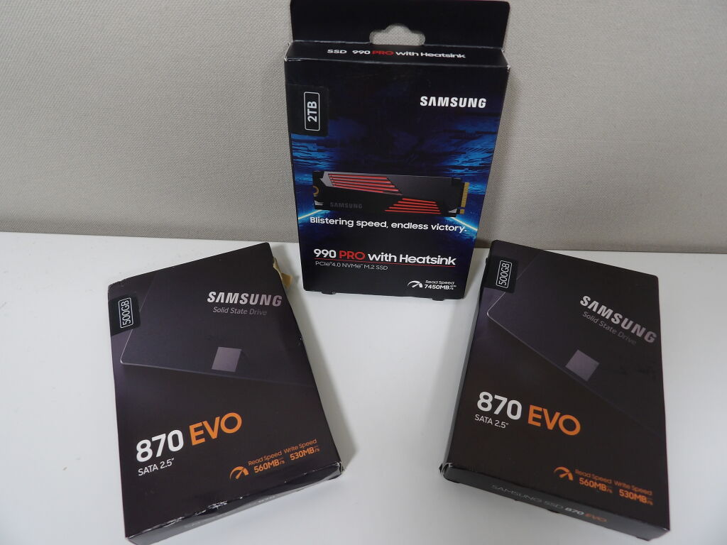 SAMSUNG x3 Cartes mémoires SSD Neufs et occasion : 990 PRO With Heatsink PCle 4.0 NVMe M.2SSD,et x2 870 EVO SATA 2.5"