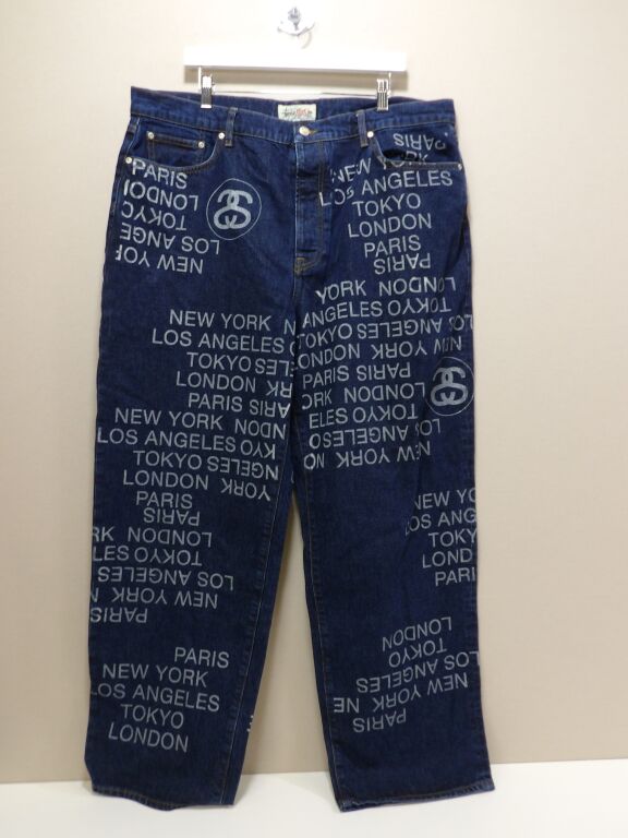 STREETWEAR - Pantalon / Jean STUSSY en denim à motifs - Occasion en bon état - Taille 38 correspond à une taille 48