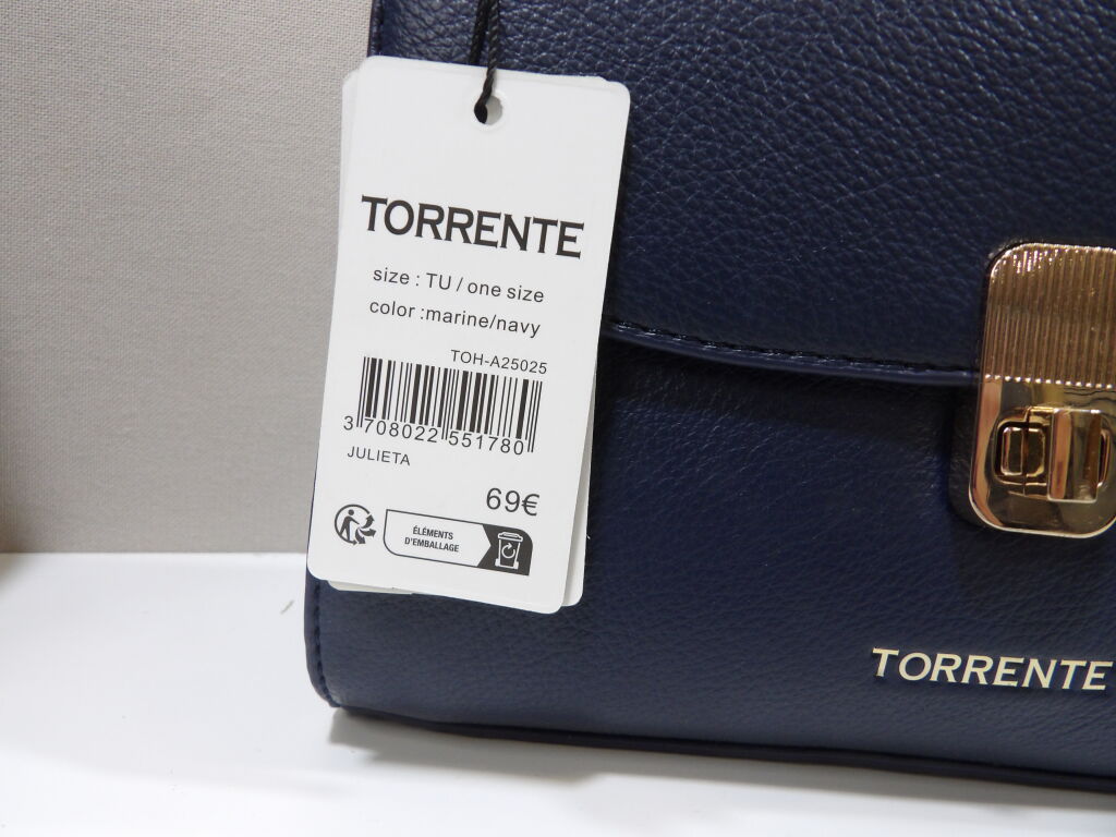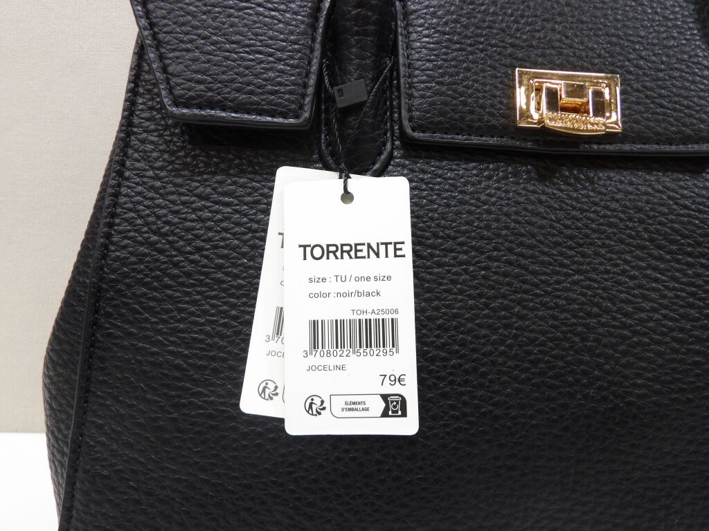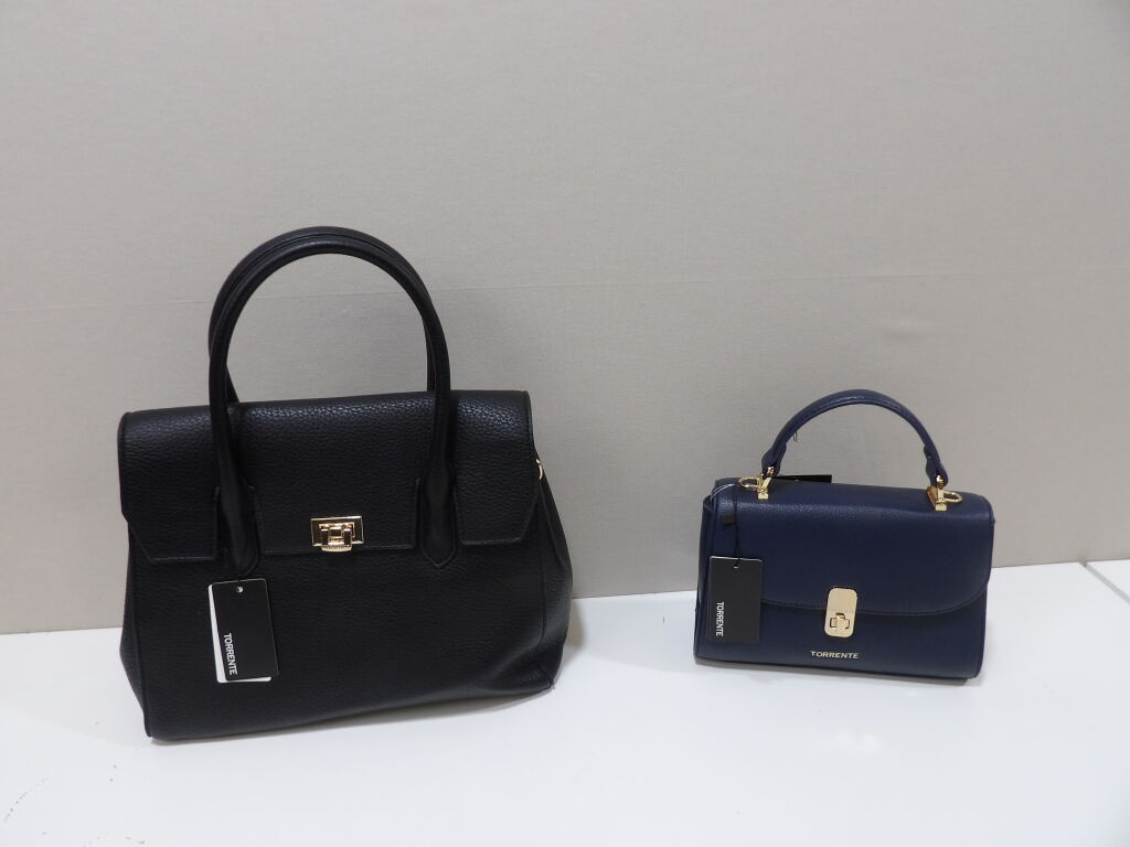TORRENTE - Lot de 2 sacs à mains femme en simili cuir grainé noir + marine - NEUF avec étiquette