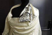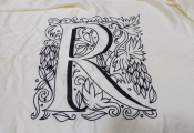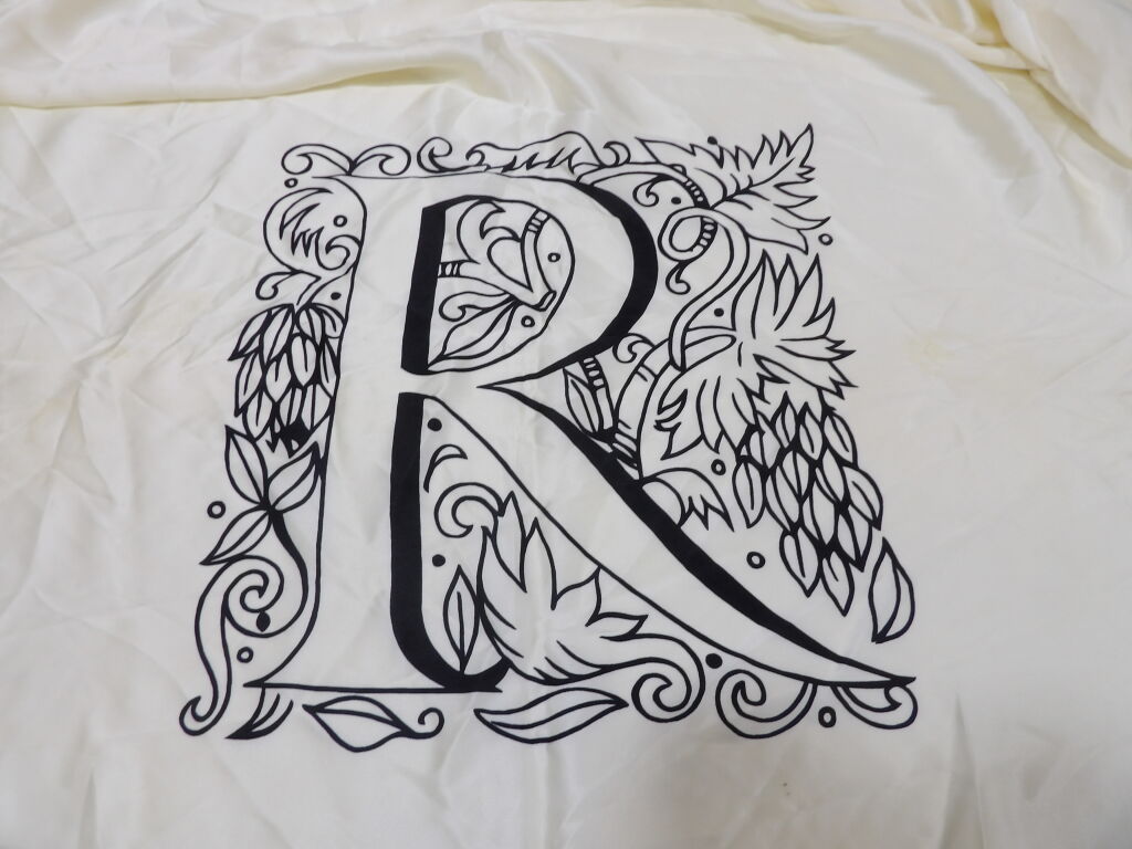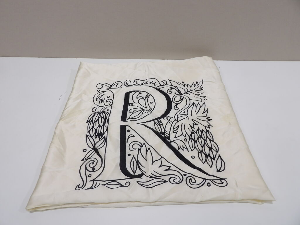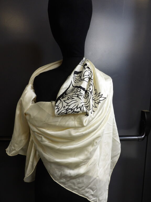 Très grand carré en soie roulotté à la main avec Monogramme "R", frabrication française - Occasion