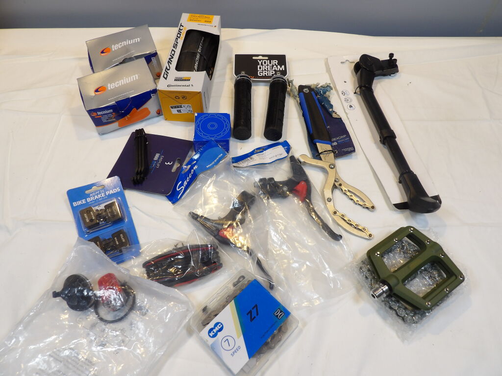 Poignée VTT - 2 Pédalles - Démonte pneu - Plaquette de frein - 2 Chambre à air - Feu arrière - 1 Pneu continental