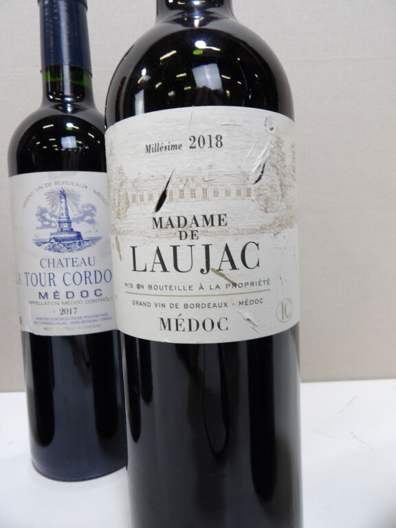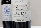 Vin rouge : Médoc 5 bouteilles : 3 de Château La Tour Cordouan 2017 et 2 x Madame de Laujac Millésime 2018 (étiquettes abîmées)